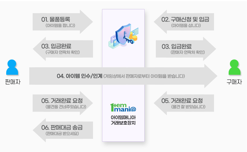 • 물품 대금을 지불하고 아이템을 받지 못하거나 아이템을 건네주고 물품 대금을 받지 못하는 사기로부터 보호받을 수 있습니다.