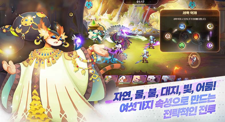 자연, 물, 불, 대지, 빛, 어둠의 힘이 깃든 속성을 전략적으로 활용해 출전해 보세요!