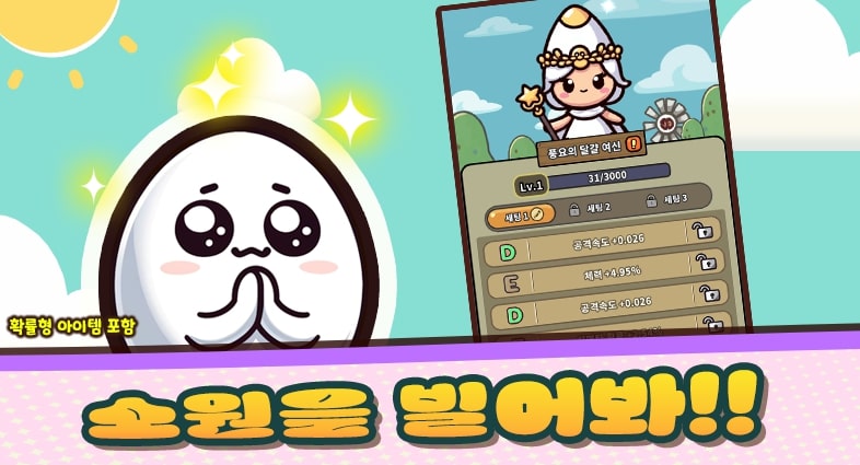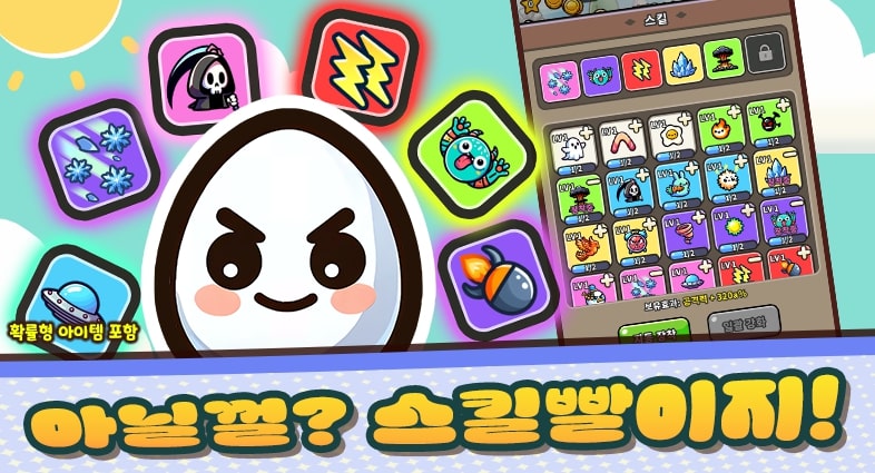 비록 작고 나약한 달걀이지만 능력치, 잠재력 무한 성장으로 강해질 수 있어요.