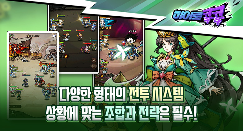 - 각기 다른 속성과 스킬을 가진 영웅들을 모두 모아 그대의 편으로 만들어라.