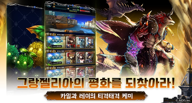 인간과 몬스터가 공존하는 세상 - 「그랑젤리아」. 한때 파괴신 로그시우스가 지배하던 땅이었다. 하지만 파괴신 로그시우시는 영웅 아딜과 여신 리라하에 의해 봉인되었고, 그 후 수백 년 동안 영웅의 자손들은 올다나 제국을 세워 세계를 통일하면서 평화로운 시대를 누려왔다. 그러던 중, 알 수 없는 마수들이 나타나 그 평화로운 시대에 크나 큰 피해를 입히기 시작했다. 이에 제12기사단 소속인 검사 카일과 마수 레이는 마수를 물리치는 원정에 나섰다. 그러나 그들은 전혀 몰랐을 것이다......이는 세계대전의 시발점을 의미한다는 것을!